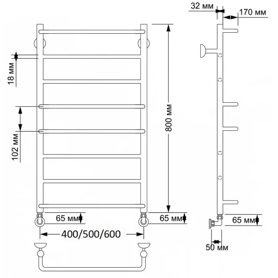 Полотенцесушитель водяной 600x432 Secado Мерида 1КСП 4603777445423
