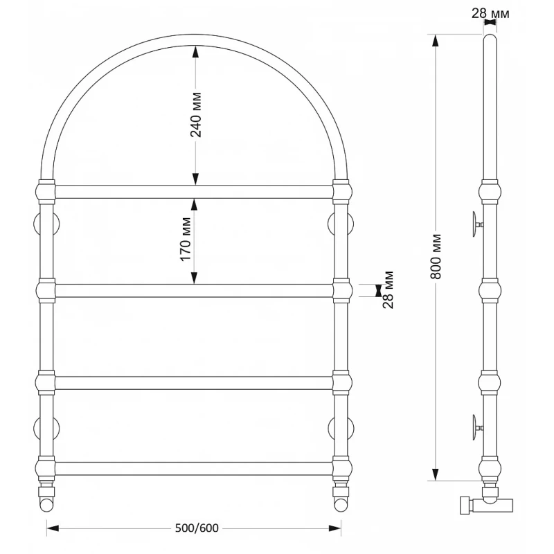 Полотенцесушитель электрический 770x432 ТЭН правый Secado Милан 1 4603777462413