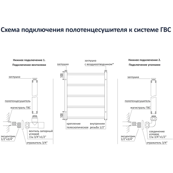 Полотенцесушитель водяной Aquatek Альфа П10 AQ RRP1080BL 800x530, черный матовый