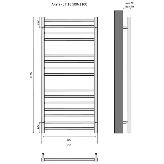 Полотенцесушитель водяной Aquatek Альтаир П10 AQ KK1080BL 800x530, черный матовый