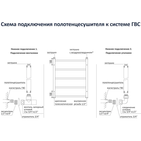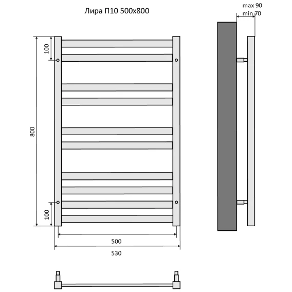 Полотенцесушитель водяной Aquatek Лира П10 AQ KP1080CH 800x530, хром