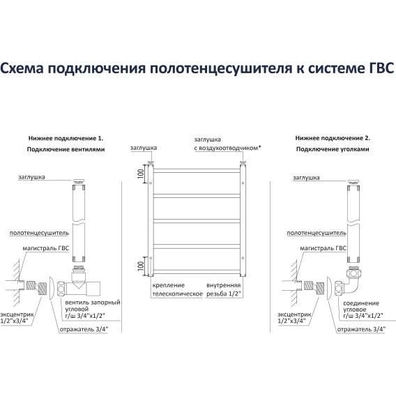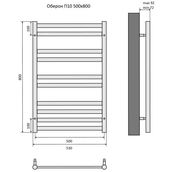 Полотенцесушитель водяной Aquatek Оберон П10 AQ RO1080CH 800x530, хром