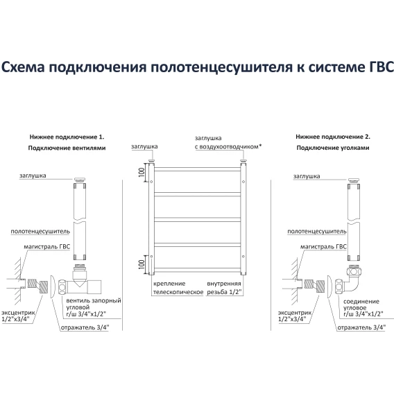 Полотенцесушитель водяной Aquatek Оберон П7 AQ RO0760CH 600x530, хром