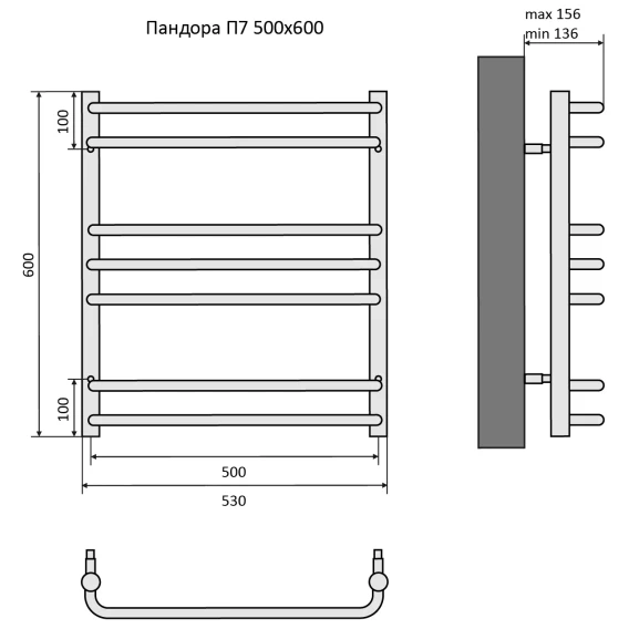 Полотенцесушитель водяной Point Афина П6 PN04148 800x432, хром