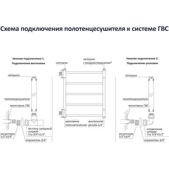 Полотенцесушитель водяной Aquatek Поларис П10 AQ KO1080BL 800x530, черный матовый