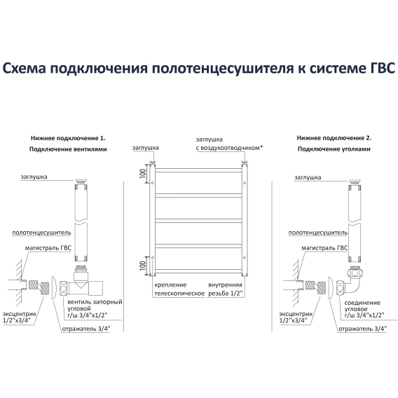 Полотенцесушитель водяной Aquatek Поларис П7 AQ KO0760CH 600x530, хром