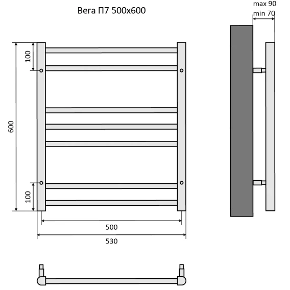 Полотенцесушитель водяной Aquatek Вега П7 AQ DR0760BL 600x530, черный матовый