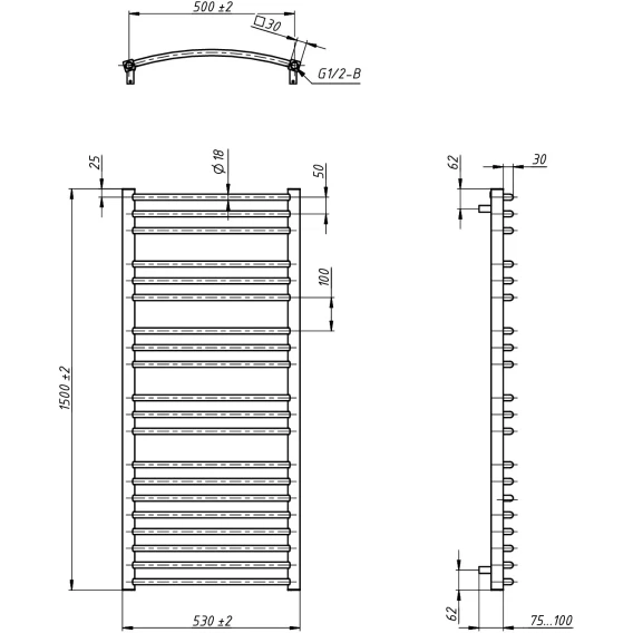 Полотенцесушитель водяной Grota Calma 4607118218615 1800x530, хром