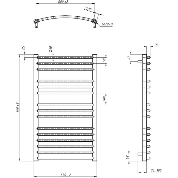 Полотенцесушитель водяной Grota Calma 4607118218677 900x630, хром