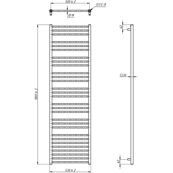 Полотенцесушитель водяной Grota Classic 4607118219650 1800x530, матовый хром