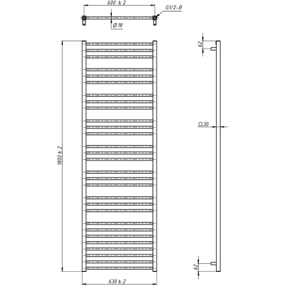 Полотенцесушитель водяной Grota Classic 4607118219872 1800x630, хром