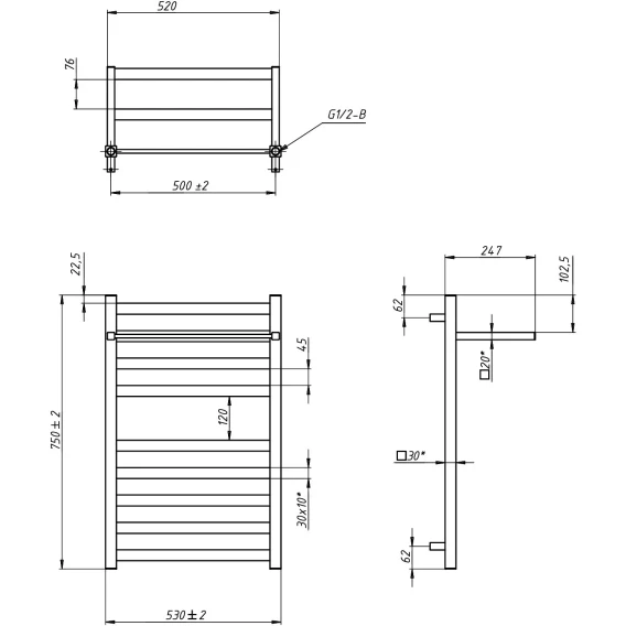 Полотенцесушитель водяной Grota Comfort 4620014132489 750x530, хром
