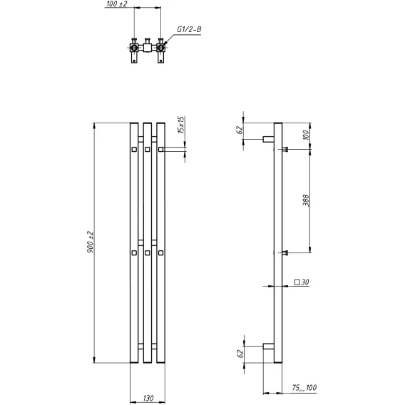 Полотенцесушитель водяной Grota Corsa 4620014135077 900x130, белый матовый