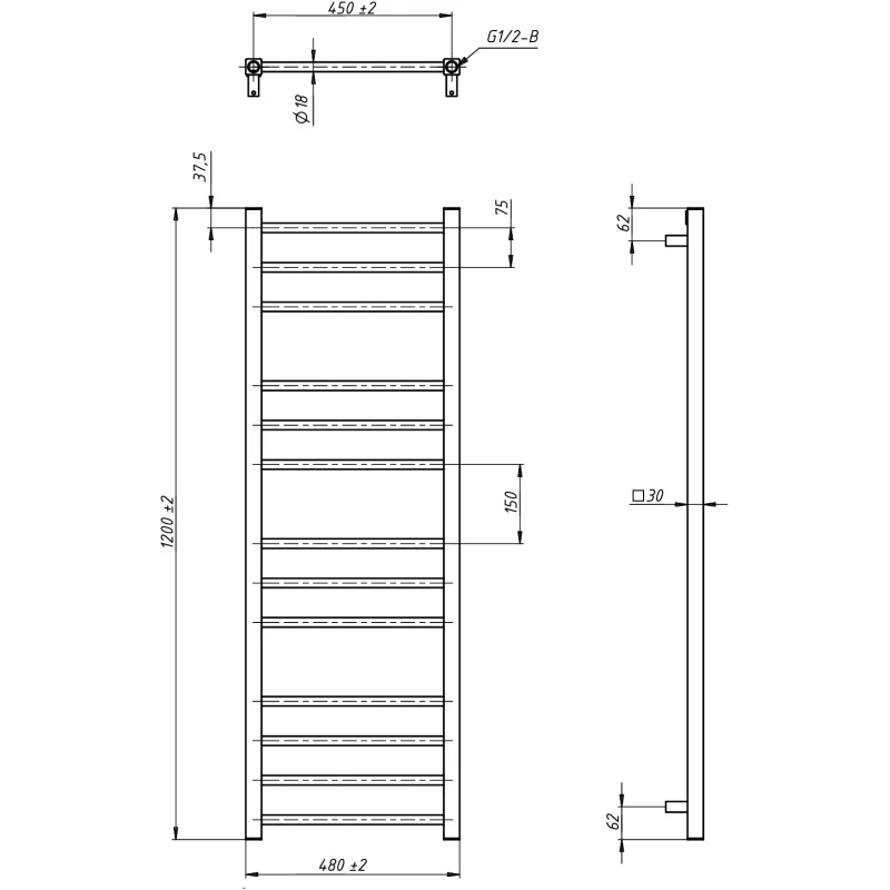 Полотенцесушитель водяной 1200x632 Secado Валенсия 2 4603777446215