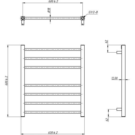 Полотенцесушитель водяной Grota Eco Classic 4607118210978 600x630, матовый хром