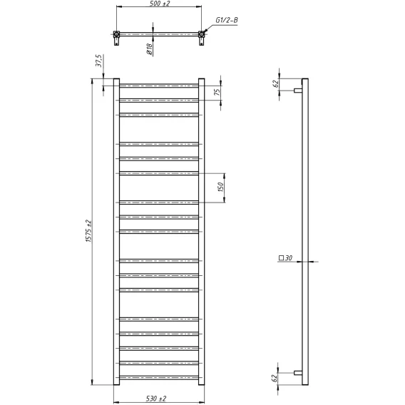 Полотенцесушитель водяной Grota Eco Classic 4620014139334 1575x530, черный матовый