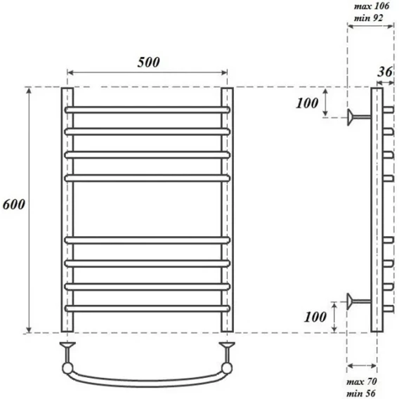 Полотенцесушитель водяной Point Альфа Премиум П8 PN05156S 600x532, хром