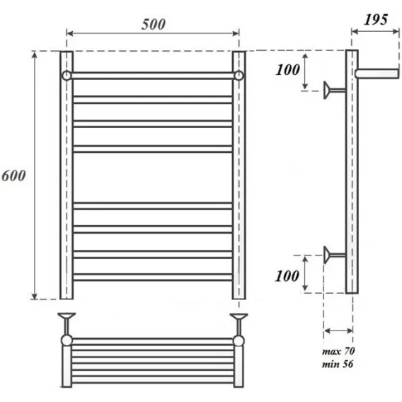 Полотенцесушитель - 1 шт, кронштейны для крепления к стене - 4 шт, кран Маевского - 1 шт, заглушка декоративная - 1 шт, паспорт/гарантийный талон - 1 шт