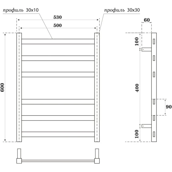 Полотенцесушитель водяной Point Афина П6 PN04148 800x432, хром
