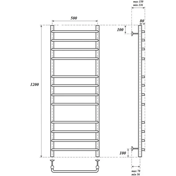 Полотенцесушитель водяной Point Нептун П12 PN09152 1200x532, хром