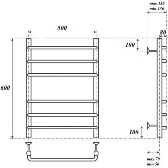 Полотенцесушитель водяной Point Нептун П6 PN09156 600x532, хром