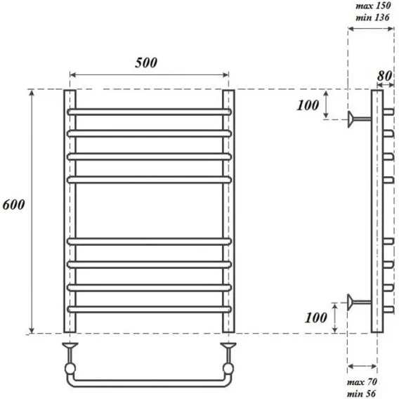 Полотенцесушитель водяной Point Нептун Премиум П8 PN09156S 600x532, хром