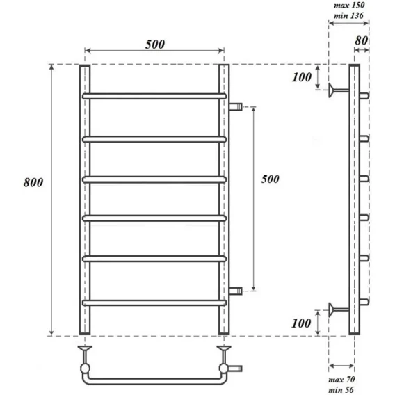 Полотенцесушитель водяной Point Ника П6 PN08558 800x532, хром