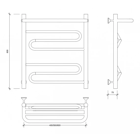 Полотенцесушитель водяной 600x600 Secado Турин 1КСП 4603759407289