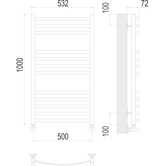 Полотенцесушитель водяной 1000x530 Secado Корсико 3 4603777474614
