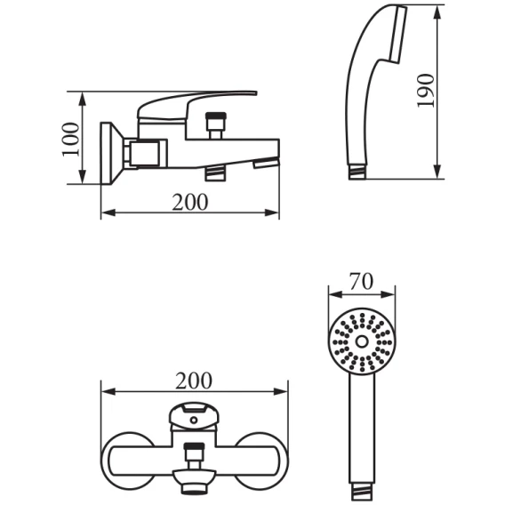 Аэратор, Металлическая розетка, Эксцентрики, Душевой шланг, Душевая лейка, Держатель для душевой лейки