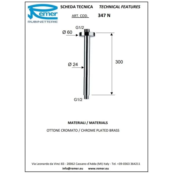 Потолочный кронштейн 300 мм Remer 347N30XV