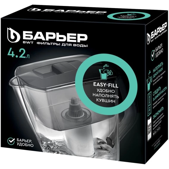Особенность фильтров-кувшинов БАРЬЕР — надежное резьбовое крепление кассеты к воронке кувшина, что исключает попадание неочищенной воды из воронки в отфильтрованную воду.
