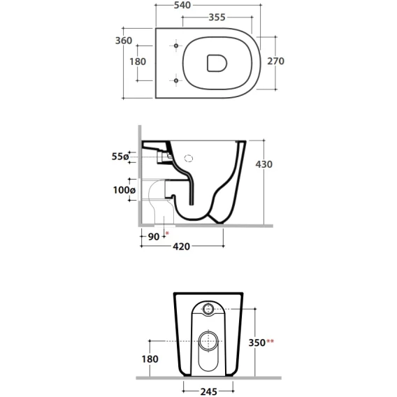 Приставной безободковый унитаз Globo Lalita LT001BI