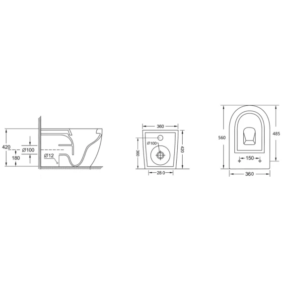Приставной безободковый унитаз с сиденьем микролифт Abber Bequem AC1111