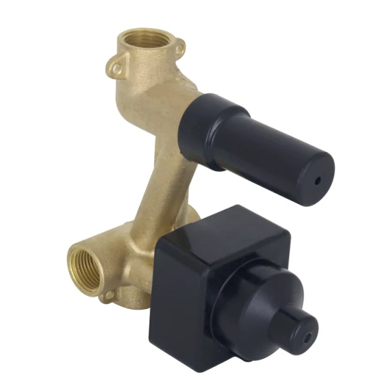 Внутренняя часть встроенного смесителя для ванны/душа скерамическим картриджем 35мм автоматическим инвертором и подключениями 1/2”.Пропускная способность при 3х барах со смешанной водой: ванная 20л/мин и душ 18л/мин