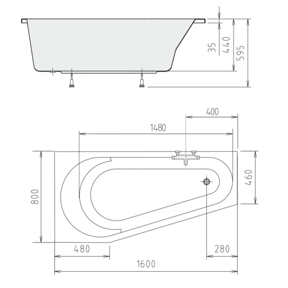 Акриловая ванна 160x80 см L Alpen Projekta 20111