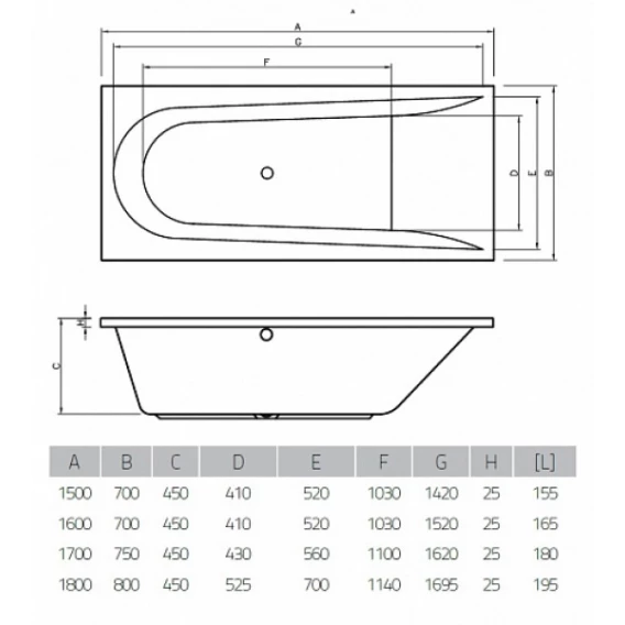 Акриловая ванна 170x75 см Vayer Boomerang GL000009590