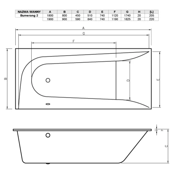 Акриловая ванна 190x90 см правая Vayer Boomerang GL000010854
