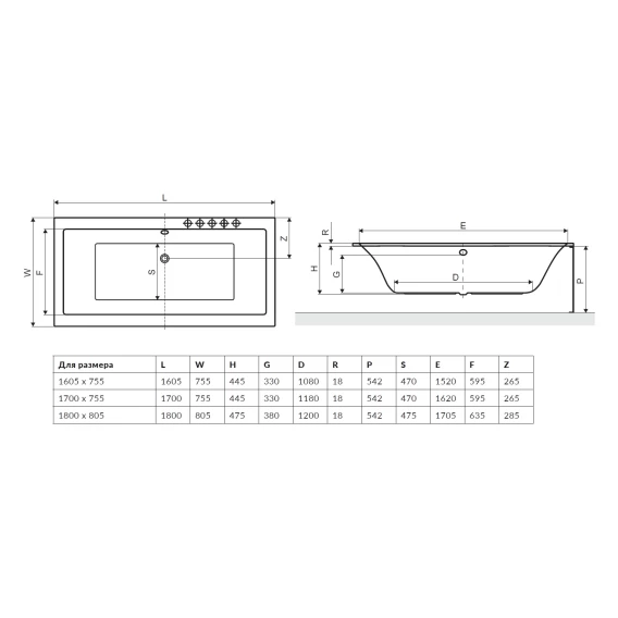 Акриловая ванна 180x80,5 см Excellent Pryzmat Slim WAEX.PRY18WHS