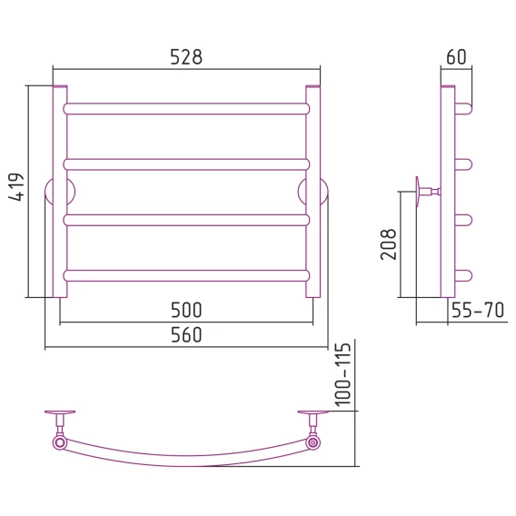 Полотенцесушитель водяной 419x560 Стилье Универсал-50 00650-5050