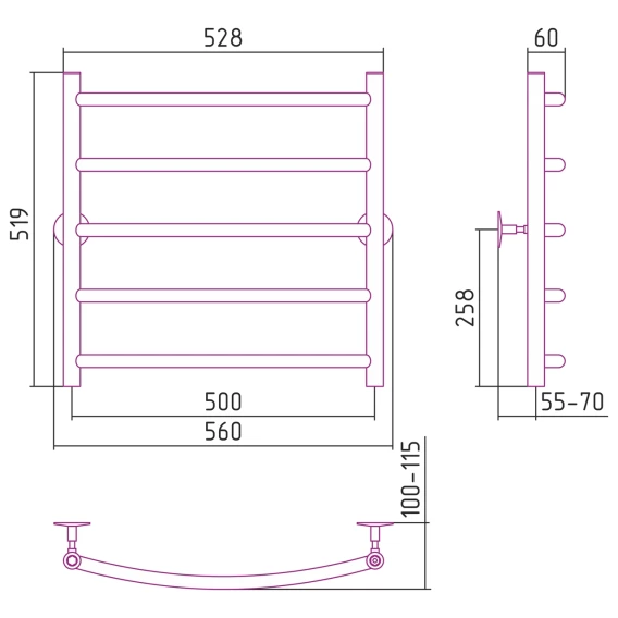 Полотенцесушитель водяной 519x560 Стилье Универсал-50 00650-6050