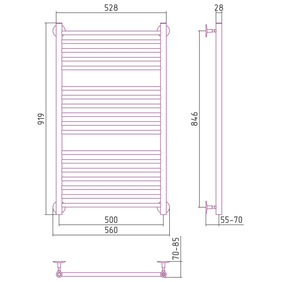 Полотенцесушитель водяной 919x560 Стилье Универсал-53 00653-1050