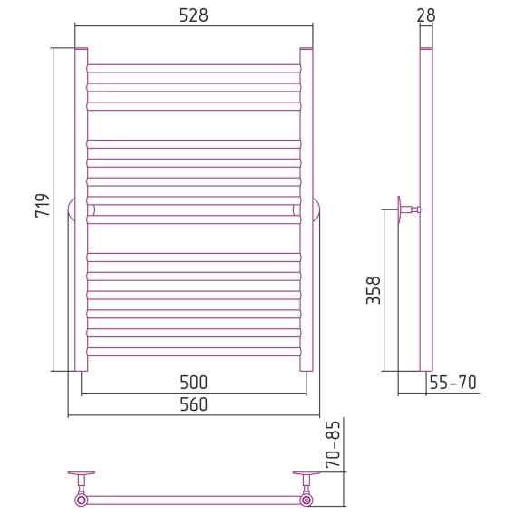 Полотенцесушитель водяной 719x560 Стилье Универсал-53 00653-8050