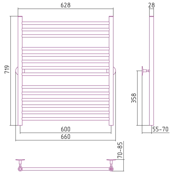 Полотенцесушитель водяной 719x560 Стилье Универсал-53 00653-8050