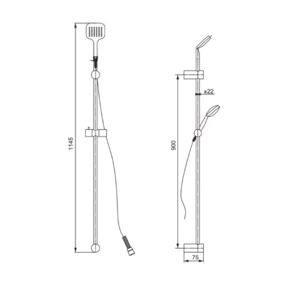 Крепление, Душевой шланг, Душевая лейка, Держатель для душевой лейки, Штанга душевая