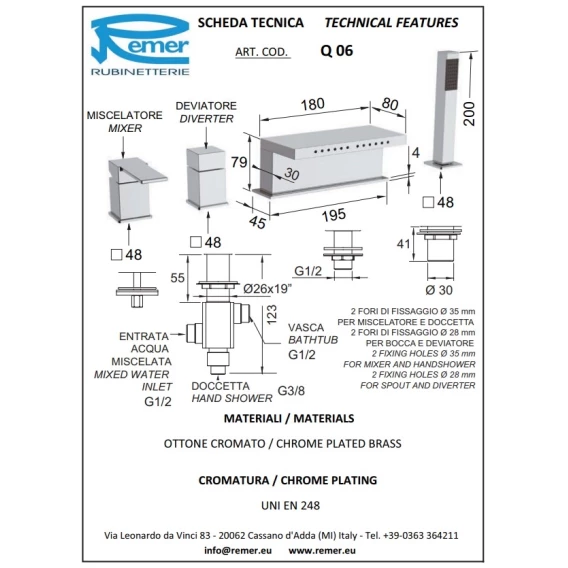Смеситель для биде без донного клапана Remer Qubika Q21