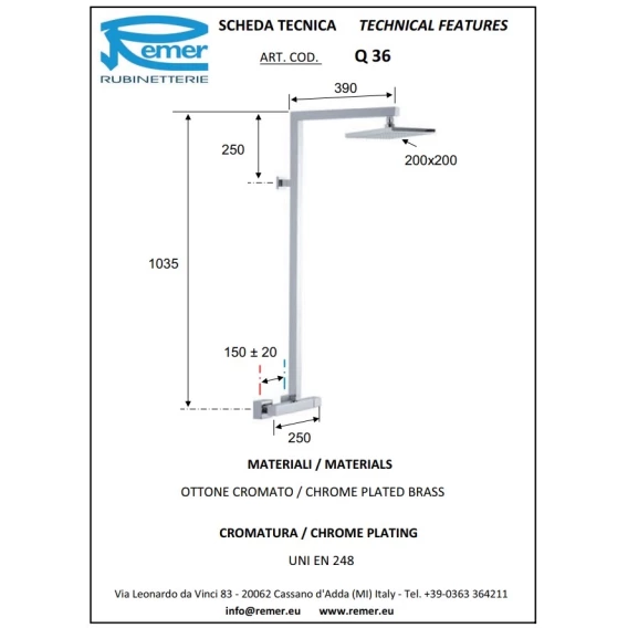 Смеситель для раковины без донного клапана Remer Minimal N11