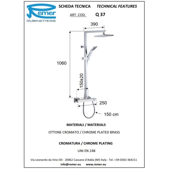 Металлическая розетка, Эксцентрики, Душевой шланг, Душевая лейка, Держатель для душевой лейки, Верхний душ, Смеситель, Кронштейн, Штанга душевая