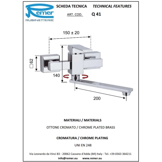 Смеситель для биде с донным клапаном Remer Liberty 23LI