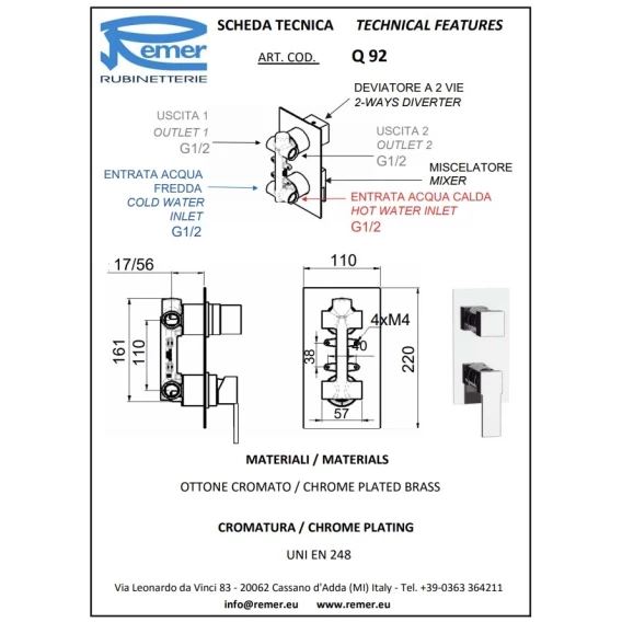 Смеситель для ванны Remer Qubika Q92